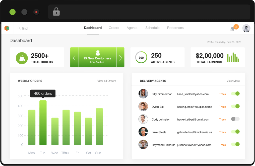 Provide your delivery team with an easy-to-use app with advanced features like order notification, optimized routes, & daily earnings.